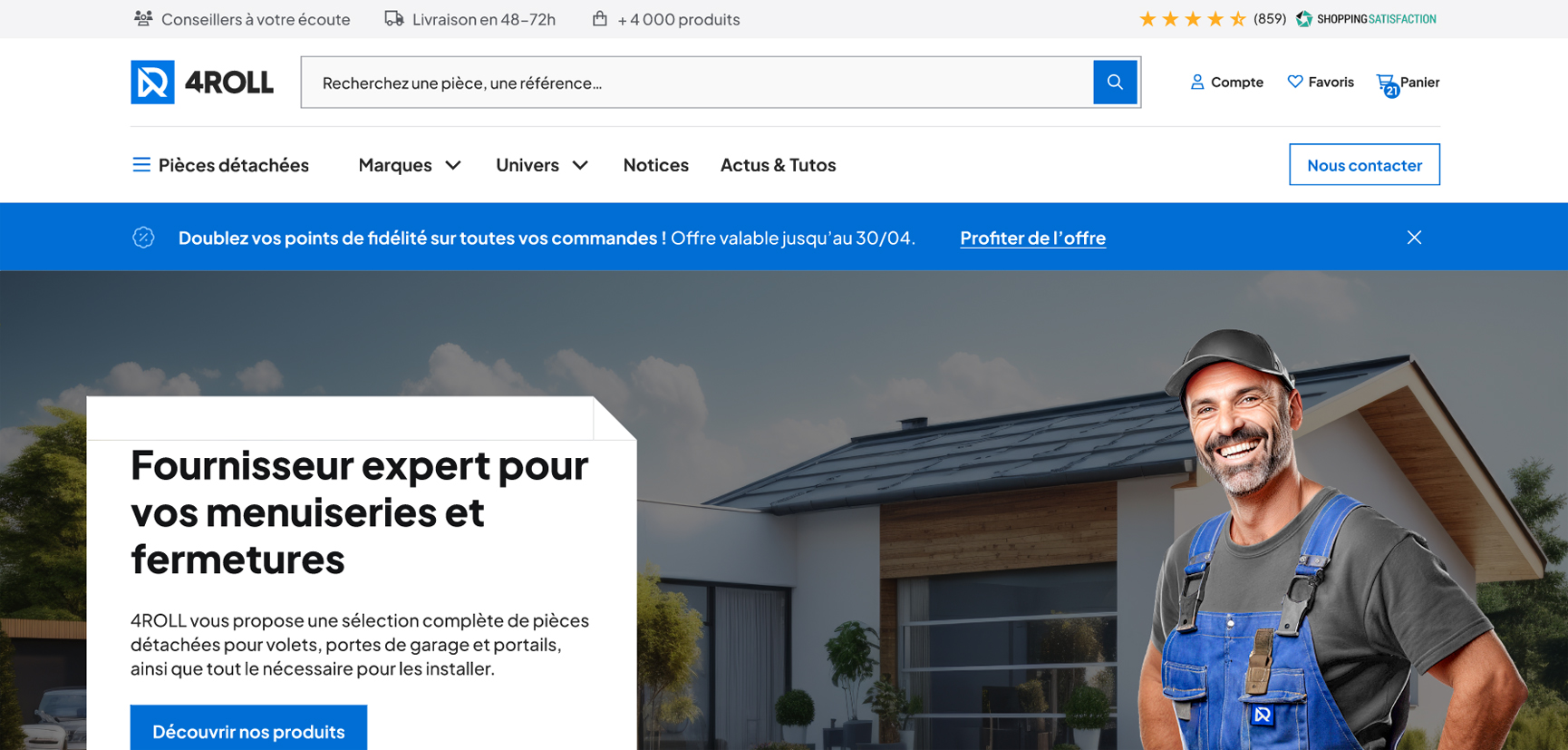 Destiné aux professionnels de la menuiserie (vente et pose, dépannage), la boutique 4roll.fr propose une large gamme de pièces détachées (motorisations, pièces mécaniques et accessoires pour volets roulants et battants, portes de garage, portails…), en plus de nombreuses fournitures de pose et autres produits pour la baie.