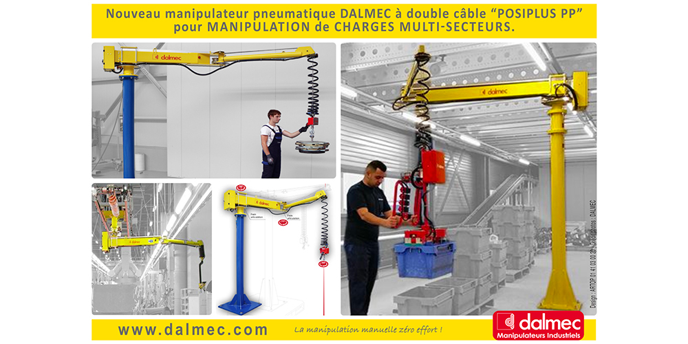 Dalmec présente un tout nouveau manipulateur pneumatique à double câble pour la manutention multi-charges sécurisée … et multi-secteurs : le manipulateur “POSIPLUS PP”.