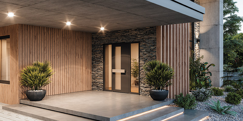 Présentée en 2021, Styl Graphic de GIMM / Les Menuiseries Françaises se déploie pleinement cette année. La conception de cette porte aluminium repose sur un dormant 80 mm, pour le neuf et en version rénovation, un cadre ouvrant aluminium et un panneau isolant de 85 mm, un seuil aluminium RPT 20 mm. De base : le double et triple vitrage (39 et 78 mm), et la crémone automatique à crochets 5 points ou équipée d’une gâche débrayable. En option : un pack sécurité CR2. L’industriel met aussi l’accent sur le look de cette gamme, avec 13 modèles calés sur les grandes tendances du marché, entre moulures grand cadre, avec ou sans grille intégrée au vitrage, jeux de reliefs contemporains, vitrages généreux et style atelier, et deux portes avec barre de tirage. En option : la touche lumière, avec des Leds intégrés sur le dormant et détecteur de présence. Côté couleurs : 24 coloris en standard, fine texture et satiné face extérieure (face intérieure : RAL 9016 satiné).