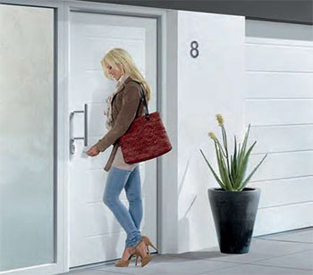 Affichant une valeur de transmission thermique U pouvant atteindre 0,8 W/(m².K), les nouvelles portes d’entrée ThermoPro Plus assurent des économies d’énergie durables et peuvent s’intégrer dans le cadre d’un projet BBC. Elle se compose d’un panneau de porte en acier de 65 mm d’épaisseur, injecté de mousse polyuréthane, avec cadre ouvrant en matériau composite. L’efficience énergétique est ensuite renforcée par l’huisserie en aluminium à rupture de pont thermique et le triple niveau d’étanchéité, ainsi que par un triple vitrage à isolation thermique. Au niveau sécurité : verrouillage 5 points avec pênes à crochet, elles peuvent être dotées, en option, d’un équipement antieffraction classe CR 2.