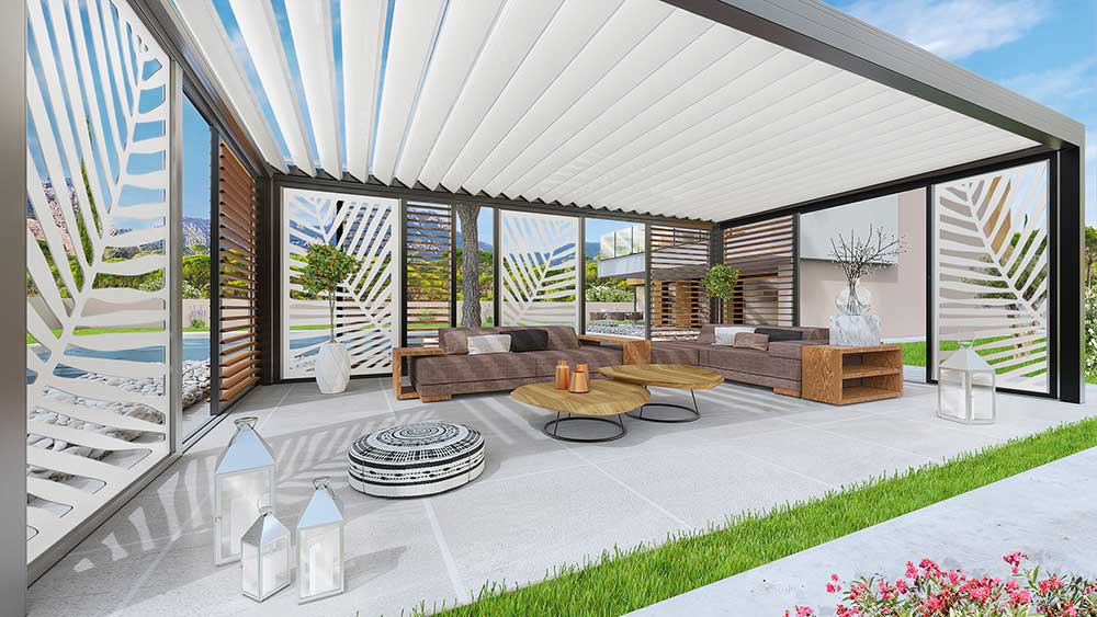 « Avec une pergola Renson, vous créez un espace de vie supplémentaire à l’extérieur de votre habitation. Un confortable salon pour se détendre en famille ou entre amis, un espace de jeu à l’abri des intempéries pour les enfants ou un coin douillet pour se reposer en toutes saisons ? La pergola bioclimatique s’adapte à votre mode de vie et vous offre un endroit confortable tout au long de l’année. »