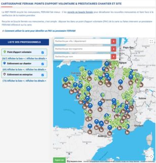 Engagée dans une démarche de recyclage en boucle fermée pour tous les composants de la menuiserie à travers FERVAM II*, l’UFME (Union des Fabricants de MEnuiseries) fait évoluer la cartographie des points de collecte et des prestataires FERVAM. Consultable par tous sur le site de l’UFME, cette nouvelle version est gage d’interactivité, de modernité et de dynamisme. Elle permet d’obtenir en quelques clics les informations souhaitées sur les points d’apport volontaire (déchetteries, distributeurs…), et sur les prestataires qui réalisent les enlèvements sur chantier et au sein des entreprises : coordonnées complètes, périmètre d’action et référencement éventuel par un ou plusieurs éco-organismes. Ainsi, un détenteur de déchets peut identifier, dans sa zone de recherche, les solutions pour recycler en boucle fermée tout en bénéficiant d’un soutien opérationnel proposé dans le cadre de la REP PMCB.