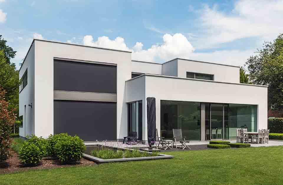 Grâce à Panovista Max, il est possible d’équiper de grandes fenêtres d’angle d’un store de protection solaire sans la présence de câbles ou de coulisses dans les angles. Les deux parties du store sont actionnées par un seul moteur et une fermeture à glissière permet de relier les deux toiles dans l’angle lors du déroulement du store. Même lorsque le store est entièrement déroulé, la vue panoramique vers l’extérieur est préservée.