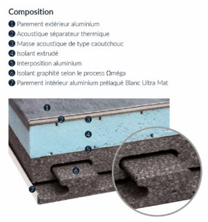 Avec son épaisseur de 68 mm et ses successions de couches d’isolants thermiques (séparateur thermique, isolant extrudé et isolant graphité), ELS Ωméga permet une isolation thermique U : 0.45 W/m².°K. offrant la possibilité de profiter de sa véranda en toutes saisons.