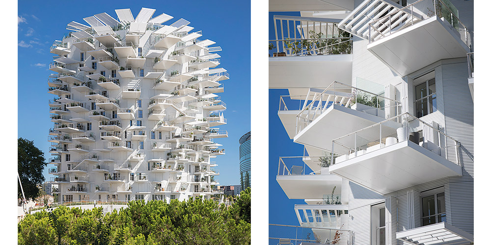 « Nous avons conçu ce produit et l’avons adapté au profilé pour qu’il soit le plus performant possible. Nous avons créé des cages d’air pour accroître la valeur thermique du produit et mis en place un système pour que le poids ne soit pas maintenu par la partie haute mais qu’il soit supporté par des rails fixés en bas. Des brevets ont été déposés sur ce système ». Grâce à une intelligence collective (architectes, promoteurs, prestataires), l’Arbre Blanc est aujourd’hui considéré comme l’une des plus belles oeuvres architecturales. Il donne une nouvelle vision de l’habitat, qui se veut harmonieuse et optimiste, en accord avec les nouvelles ambitions énergétiques et écologiques.