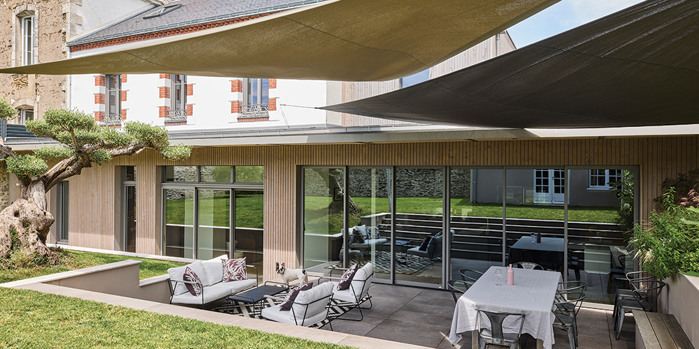Au cœur de la cité nantaise, les propriétaires de cette maison de la fin du XIXe ont choisi les menuiseries bois-aluminium MéO pour éclairer les espaces entièrement rénovés.