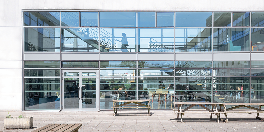 À l’université de La Rochelle, la rénovation d’un bâtiment et ses 1 200 m2 de mur-rideau valide la toute nouvelle solution Re-nouveler la façade de Technal.